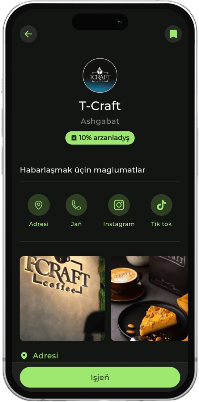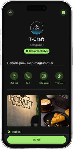 Ýerli restoranlarda, dükanlarda we hyzmatlarda aýratyn arzanladyşlardan peýdalanyň.